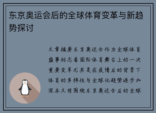 体育运动能够增强体力、改善心肺功能、减轻压力、促进心理健康和增加社交机会。